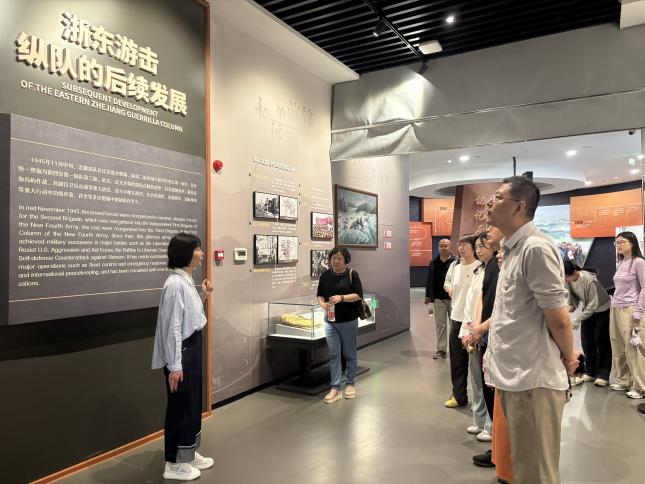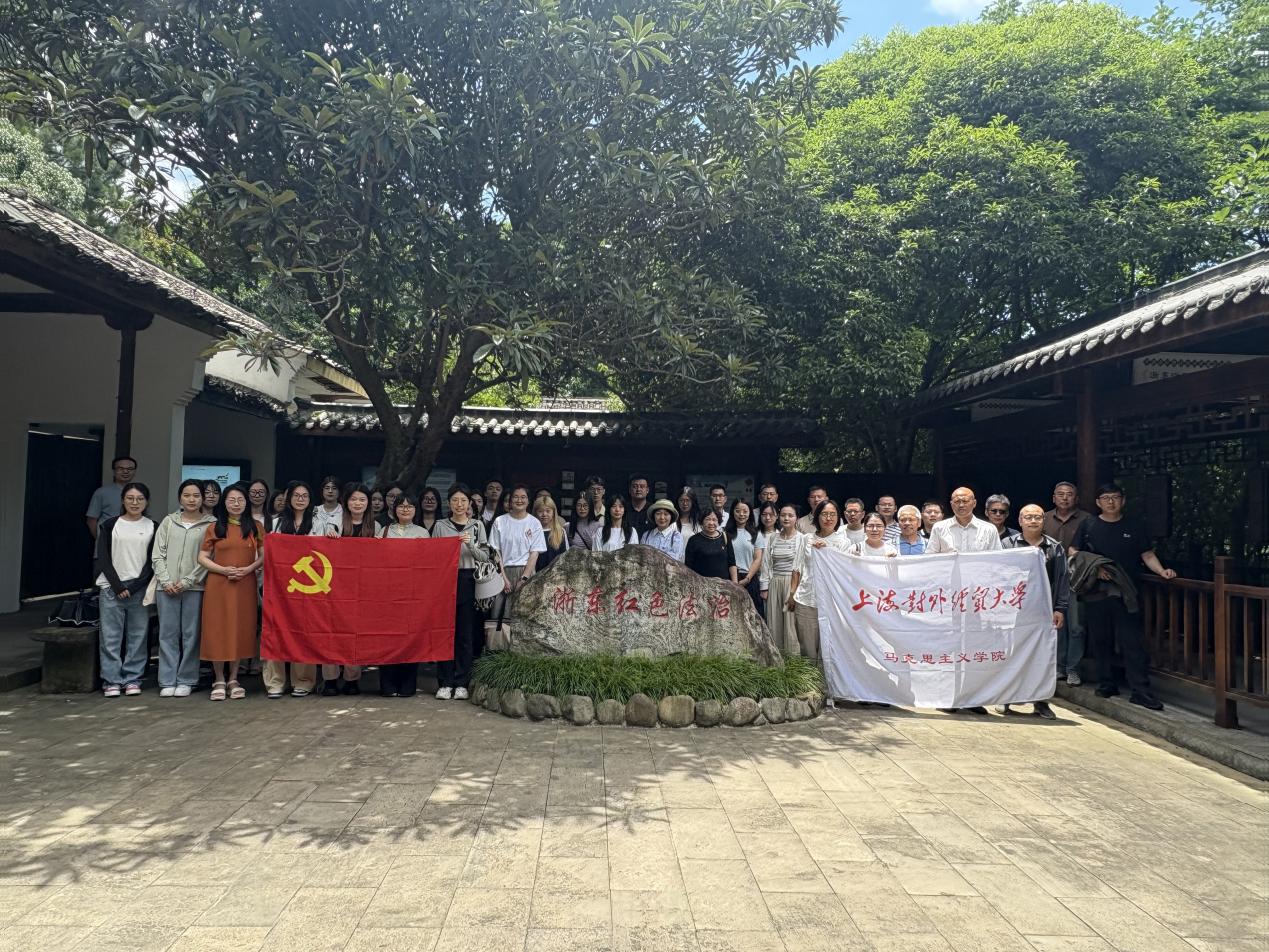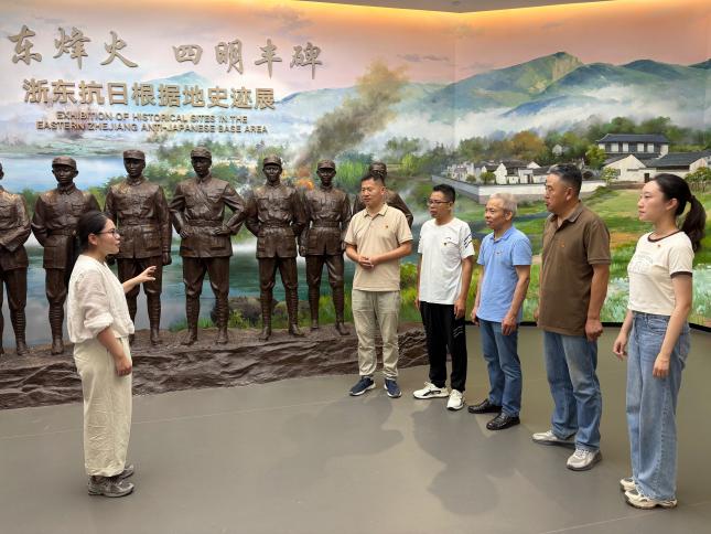 師生黨員共同參觀浙東(四明山)抗日根據地舊址群,走進中共浙東區委舊址、浙東行政公署舊址、新四軍浙東游擊縱隊軍史陳列館、浙東銀行舊址、新華社浙東分社《新浙東報》社舊址、譚啟龍同志舊居、何克希將軍紀念室、新四軍浙東游擊縱隊司令部舊址、浙東紅色法治文化展館等十余處紅色革命遺跡,重溫革命歷程,傳承革命精神。