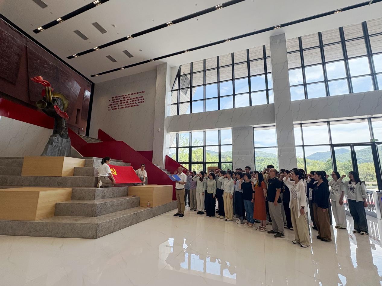 為深入學習領會習近平總書記關于加強黨的作風建設的重要論述,扎實推進深入貫徹中央八項規定精神學習教育走深走實,在中國共產黨成立104周年之際,馬克思主義學院黨委組織全體師生黨員6月21日赴浙東(四明山)抗日根據地舊址群開展“學思想,強作風,建新功”主題黨日活動,在四明山這座“抗戰名山”上銘記歷史,緬懷先烈,重溫入黨誓詞,賡續紅色血脈,傳承抗戰精神。