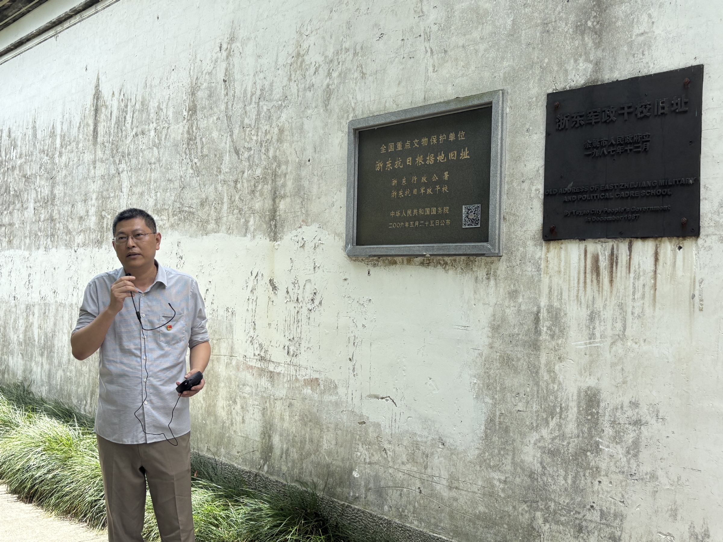 在浙東行政公署舊址,教工第三黨支部書記翟海濤講授“弘揚偉大抗戰精神”微黨課,他從浙東抗日根據地的戰略地位、中共中央開辟浙東戰略基地的決策和浙東縱隊的發展及其與上海的淵源三個角度介紹了浙東抗日根據地的創建和意義,他指出一路追尋上海革命前輩的腳步,來到這塊浸透著無數革命前輩鮮血的圣地,緬懷先烈,見證他們的豐功偉績,黨員們要把紅色基因代代傳下去,讓革命事業薪火相傳、血脈永續。