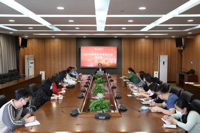 2020年5月15日下午,學校在德政樓317室組織2020年新文科專業認證(自主專業認證)培訓會,邀請東華大學姚衛新教授作《專業認證的準備工作及自評報告撰寫》專題培訓。商務英語、會計學、市場營銷等國家級一流本科專業建設點負責人和教師以及相關教學單位分管教學工作負責人參加培訓。