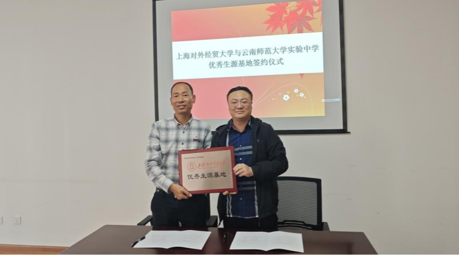 5月23日,上海對外經貿大學優秀生源基地簽約儀式在云南師范大學實驗中學舉行,孟維亮與云南師范大學實驗中學副校長鄭龍云共同參加了此次簽約授牌儀式。