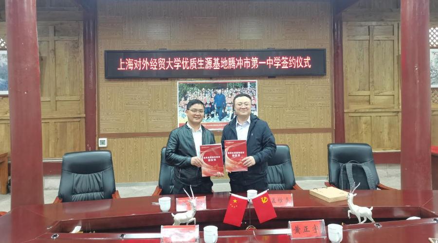 5月22日,上海對外經貿大學優秀生源基地簽約儀式在騰沖市第一中學舉行。孟維亮與騰沖市第一中學黨委書記普加懿、紀委書記張維平、校長助理黃正宇參加了此次簽約授牌儀式。