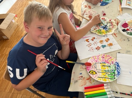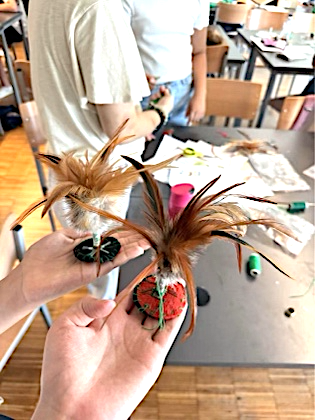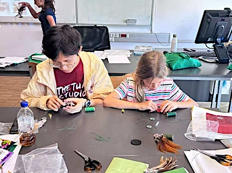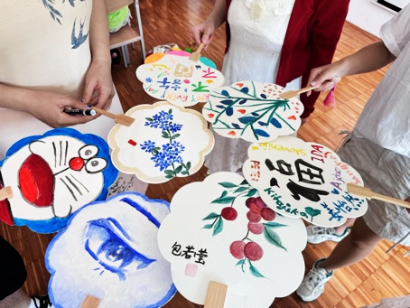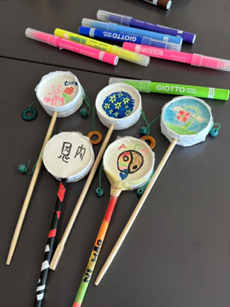 文化工作坊高潮迭起——學生們親手扎制毽子,課后庭院自發練習的身影,是文化生根的生動注腳;團扇制作從千年歷史講起,孩子們執筆繪就熊貓、茉莉花,素白扇面綻放天馬行空的東方美學;撥浪鼓DIY中,中國名字、太極八卦躍然鼓面,傳統樂器煥發新生。