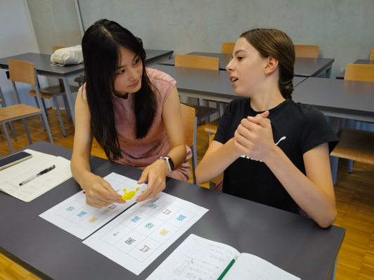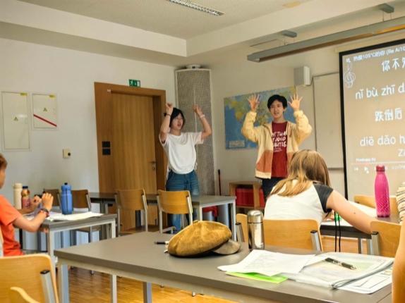 在當地兩名本土漢語教師卡迪婭(Katja)和安妮雅(Anja)的帶領下,海外實習團隊的小老師們,以“一對二”或“一對三”的分組形式,幫助不同水平的學員實現了中文語言能力的階梯式提升。