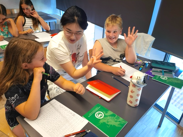 在當(dāng)?shù)貎擅就翝h語教師卡迪婭(Katja)和安妮雅(Anja)的帶領(lǐng)下,海外實(shí)習(xí)團(tuán)隊(duì)的小老師們,以“一對二”或“一對三”的分組形式,幫助不同水平的學(xué)員實(shí)現(xiàn)了中文語言能力的階梯式提升。