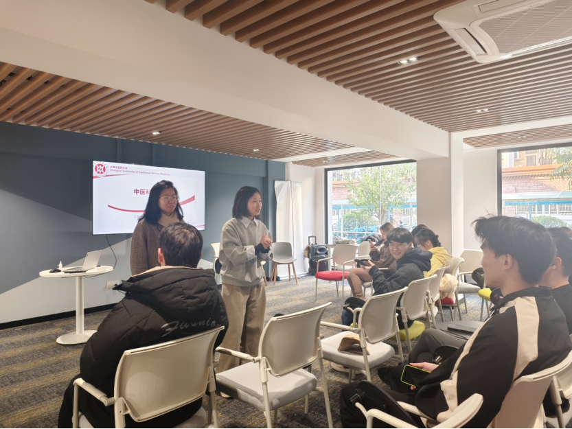 為更好地結(jié)合留學(xué)生第一課堂漢語教學(xué)內(nèi)容,讓學(xué)生親身體演漢語第一課堂中的中國文化,加深留學(xué)生對中醫(yī)文化的理解,12月21日,國際中文教育學(xué)院邀請上海中醫(yī)藥大學(xué)研究生賴碧怡、李儀曼在學(xué)生社區(qū)開展中醫(yī)體驗活動。