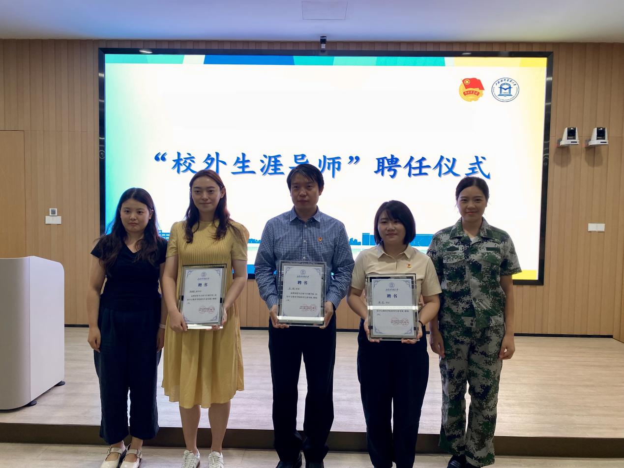 虞婭娜、張藝偉代表國際中文教育學(xué)院、會展與傳播學(xué)院就業(yè)育人工作站,向吳一烜、張藝、須雨虹頒發(fā)“校外生涯導(dǎo)師”聘書。