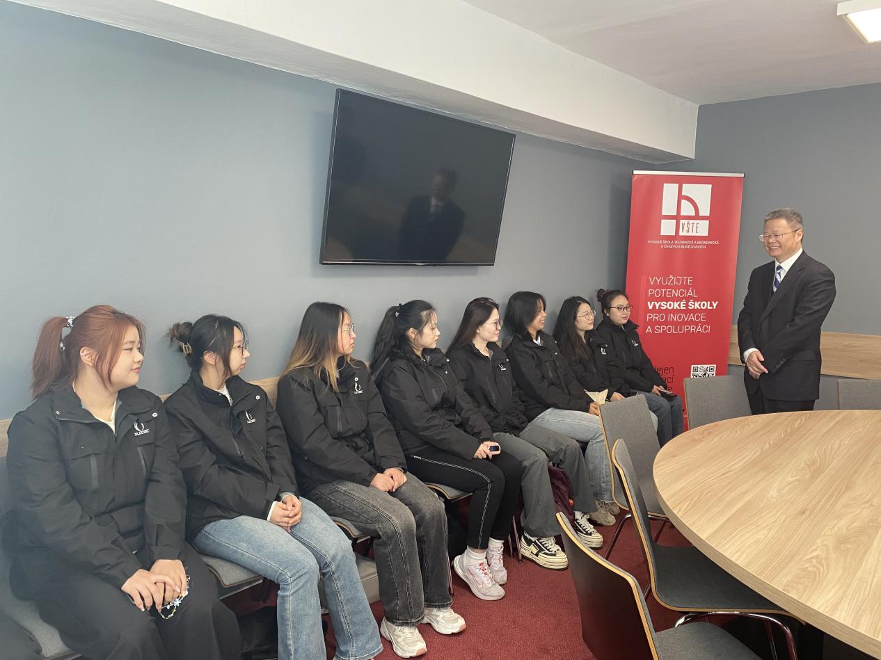 會前,章益國一行親切看望國際中文教育學院捷克海外實習團隊全體師生,他細致關心實習團初到捷克的適應情況,詢問團隊未來三周的學習、交流、實踐計劃,寄語全體師生珍惜學校、外方提供的寶貴機會,在海外教學一線錘煉專業本領,做好文化橋梁,展示中國青年的風采。