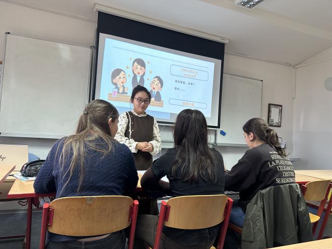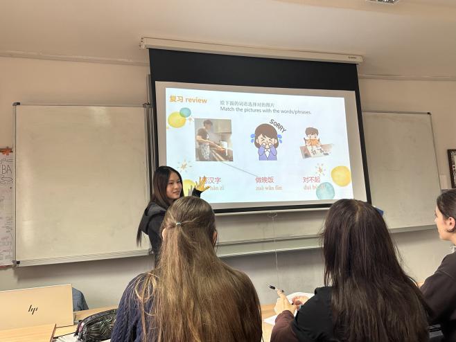 10月13日至15日,我院學子懷著傳播中華語言文化的崇高使命感,在捷克塔博爾高中、捷英中學、布杰約維采孔子課堂本部成功開展了一系列國際中文教學實踐活動。備課階段,同學們精益求精,精心雕琢每一頁PPT,反復推敲每一個例句,對教學課件進行了多輪研討與修訂,并相互進行模擬演練,為正式授課奠定了堅實基礎。
