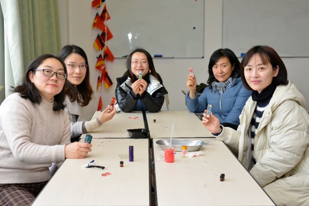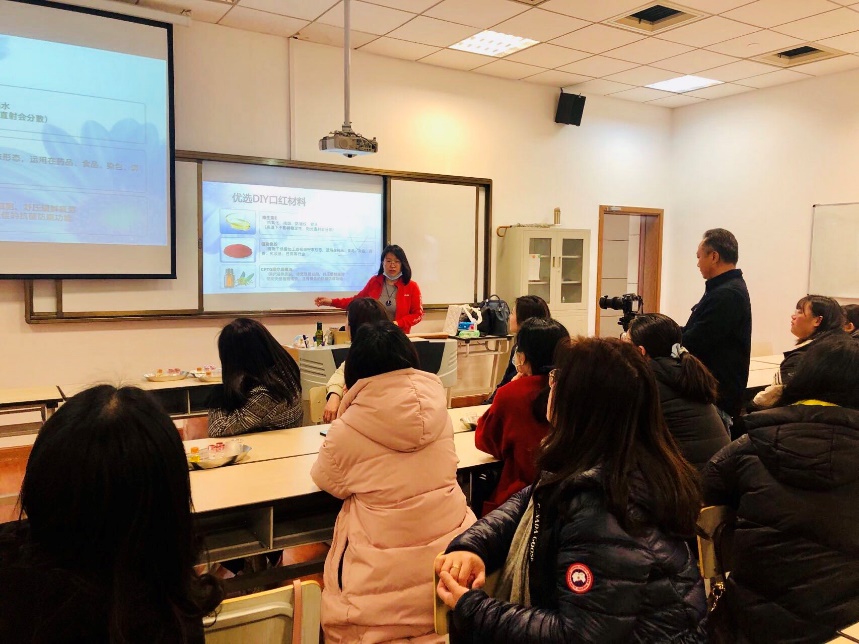 活動現場,大家踴躍地向齊老師和其助手請教,互相探討,互相交流,興致盎然,成功地制作出了一支支精美健康的口紅。