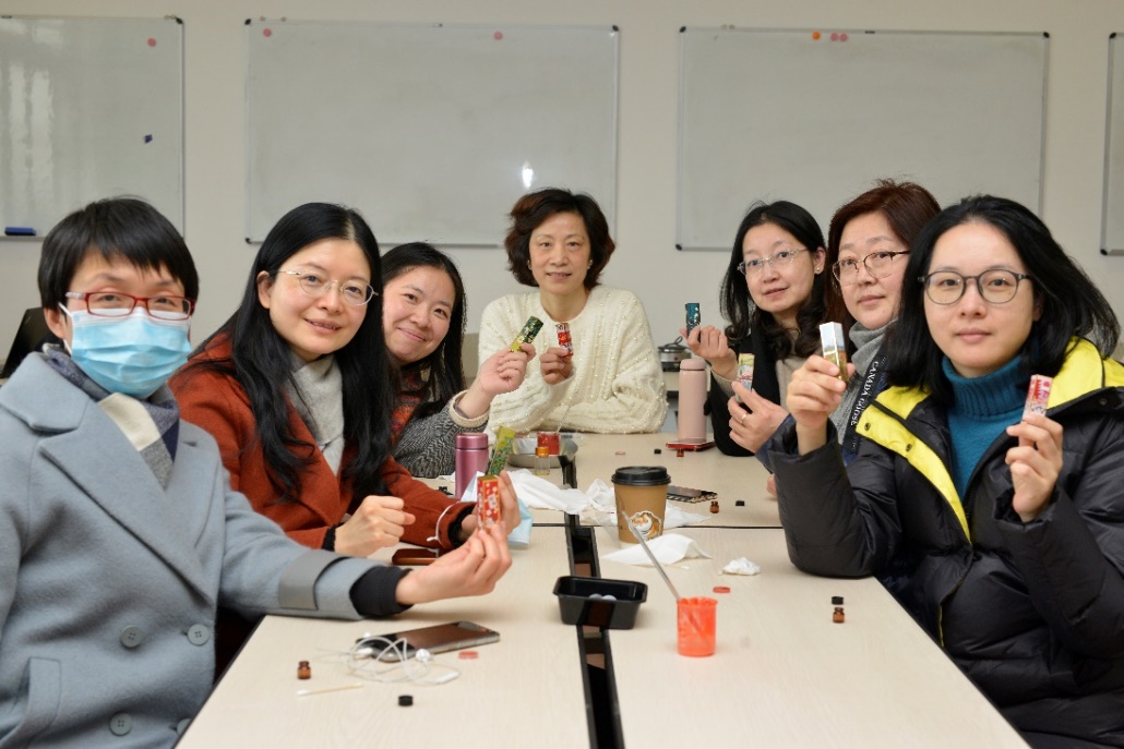 口紅冷凍成型等待期間,齊老師還教大家如何使用精油進行頭皮調理,緩解疲勞,舒緩減壓,安定情緒,改善睡眠。美美的口紅、淡淡的清香,讓大家感受到輕松和愉悅,有利于教職工的身心健康。本次活動受到了大家的熱烈歡迎和紛紛好評。活動進行中和結束后,老師們紛紛表示希望以后多舉辦類似活動。