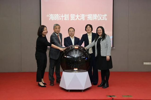 儀式上,吳毅、陶文捷、張芳、張軍梅、蔡婷共同為“海鷗計劃 貿大灣”揭牌。