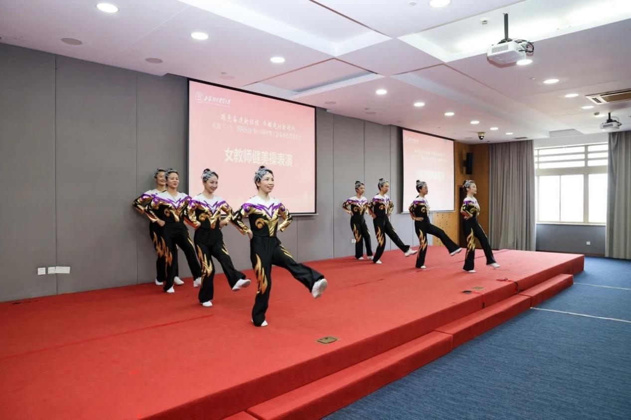會(huì)議現(xiàn)場(chǎng)進(jìn)行了女教師健美操表演和教工合唱表演,為節(jié)日獻(xiàn)上祝福的同時(shí)也展示了我校女教師的風(fēng)采。