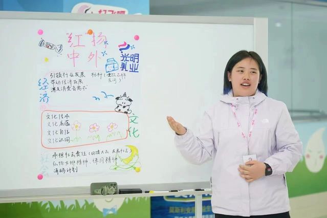 參觀結束后,光明乳業的三位海鷗姐姐分別介紹了自己的求職和工作歷程,分享自己在職場中的一路成長和所思所想。接下來同學們在海鷗導師的帶領下,就探索老字號的傳承與創新的主題分小組選題討論并進行展示,同學們都積極主動跟大家分享自己的見解,活動現場氣氛非常融洽。參與的同學紛紛表示,通過此次活動,更加深入地了解了職場環境也通過各位海鷗姐姐和導師們分享學習到了就業經驗,獲益匪淺!