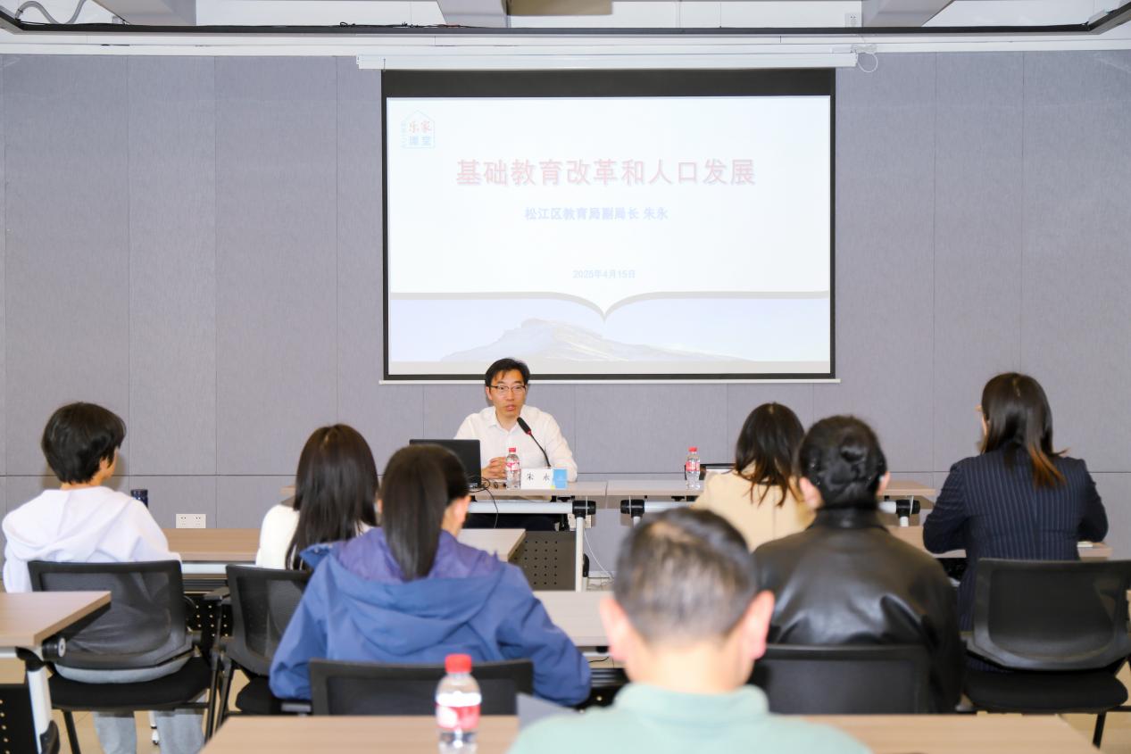 朱永作了題為《基礎(chǔ)教育改革和人口發(fā)展》的報(bào)告。報(bào)告從人口發(fā)展的底層邏輯出發(fā),圍繞“基礎(chǔ)教育面臨的機(jī)遇與挑戰(zhàn)”“區(qū)域教育改革:艱難的突圍”兩個(gè)主要方面,深入分析了基礎(chǔ)教育改革發(fā)展的背景、問題和舉措。最后,他重點(diǎn)結(jié)合松江區(qū)基礎(chǔ)教育改革發(fā)展的實(shí)踐,從基礎(chǔ)教育品牌建設(shè)、促進(jìn)教育人才發(fā)展、堅(jiān)持立德樹人的全面發(fā)展觀、擁抱新技術(shù)促進(jìn)基礎(chǔ)教育轉(zhuǎn)型等方面作了交流。