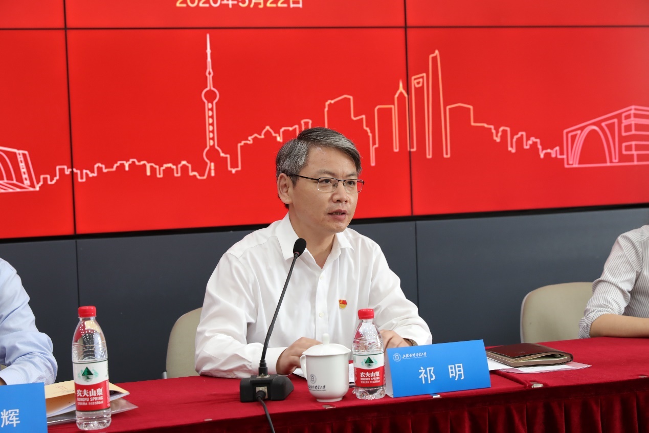 5月22日下午,統計與信息學院在松江校區信息樓503會議室舉行“四史”學習教育暨“移動的黨課”啟動儀式。校黨委副書記、副校長祁明出席并講話,黨委組織部副部長黃靜,學院全體教職工、學生黨員、發展對象和松江區廣富林街道御上海居民區黨支部黨員等近200人通過線下和線上相結合的方式參加了活動。活動分為啟動儀式和專題黨課兩個篇章,由學院黨委副書記徐峰主持。