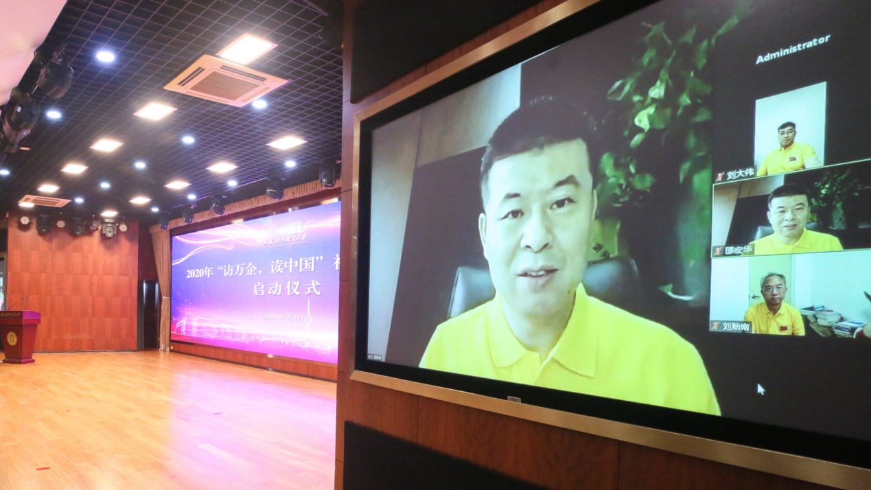 7月3日,2020年“訪萬企,讀中國”社會(huì)調(diào)查項(xiàng)目(簡(jiǎn)稱“萬企調(diào)查”)啟動(dòng)儀式在信息樓507報(bào)告廳和zoom會(huì)議平臺(tái)上舉行。中國對(duì)外經(jīng)濟(jì)貿(mào)易統(tǒng)計(jì)學(xué)會(huì)名譽(yù)會(huì)長王亞平、會(huì)長劉貽南,環(huán)球慧思(北京)信息技術(shù)有限公司董事長邵宏華,我校副校長徐永林、教務(wù)處副處長(主持工作)朱建明、黨委宣傳部副部長張莉莉、研究生院副院長喬檀,統(tǒng)計(jì)與信息學(xué)院長劉永輝、黨委副書記徐峰、副院長劉慧、趙倩,以及參加項(xiàng)目的全校指導(dǎo)教師、學(xué)生和企業(yè)人員代表,線上線下共計(jì)200余人出席啟動(dòng)儀式。啟動(dòng)儀式由統(tǒng)計(jì)與信息學(xué)院黨委書記范登峰主持。