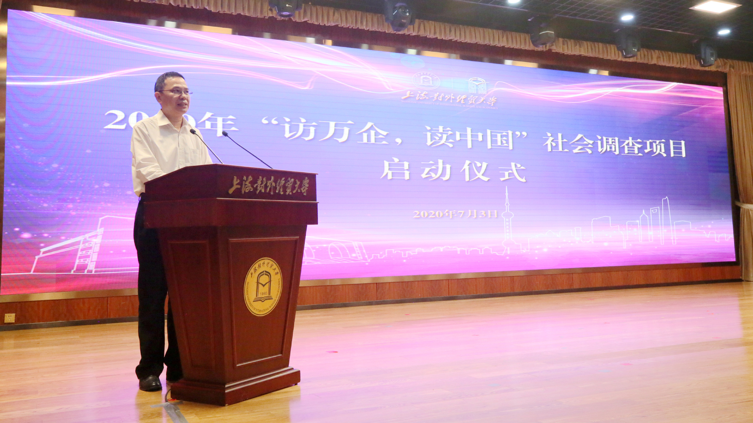 啟動(dòng)儀式上,徐永林代表學(xué)校致辭。他首先向中國對(duì)外經(jīng)濟(jì)貿(mào)易統(tǒng)計(jì)學(xué)會(huì)、環(huán)球慧思(北京)信息技術(shù)有限公司對(duì)學(xué)校工作長期以來的支持表示感謝。他鼓勵(lì)學(xué)校師生積極參與“萬企調(diào)查”,深入企業(yè)一線,開展接力式追蹤調(diào)查,希望同學(xué)們要主動(dòng)了解國情、社情、企情,在時(shí)代大潮中涵養(yǎng)家國情懷。在調(diào)查實(shí)踐中注重科研訓(xùn)練,增強(qiáng)問題意識(shí),培養(yǎng)學(xué)術(shù)思維習(xí)慣。要求真學(xué)問,練真本領(lǐng),知行合一,做實(shí)干家。