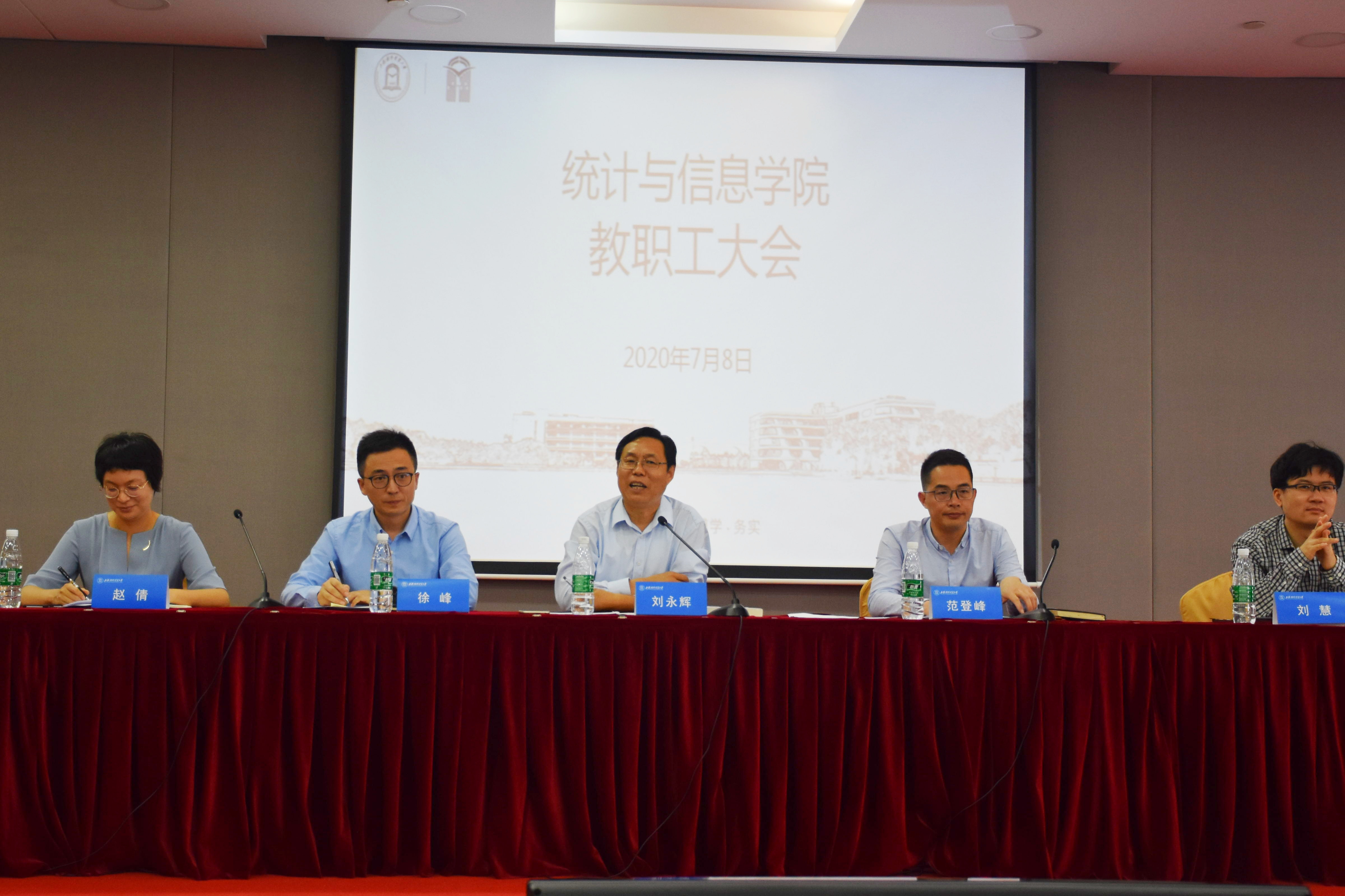7月8日下午,統(tǒng)計與信息學(xué)院在松江校區(qū)信息樓526會議室召開學(xué)期末全體教職工大會。會議由學(xué)院黨委書記范登峰主持。