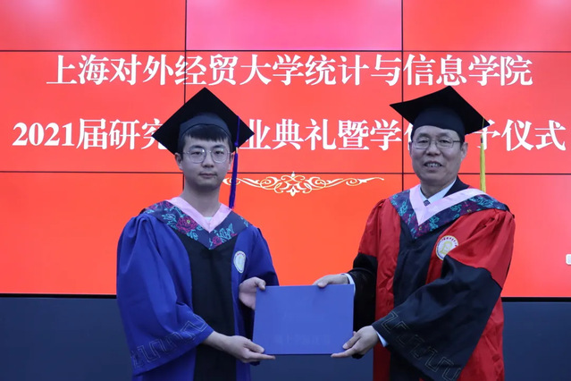 4月9日下午,上海對外經(jīng)貿(mào)大學(xué)統(tǒng)計(jì)與信息學(xué)院2021屆研究生畢業(yè)典禮暨學(xué)位授予儀式在圖文信息大樓503會議室舉行,統(tǒng)計(jì)與信息學(xué)院院長劉永輝,副院長劉慧、王利娟,學(xué)院導(dǎo)師代表及2021屆研究生出席典禮。活動由學(xué)院黨委副書記徐峰主持。