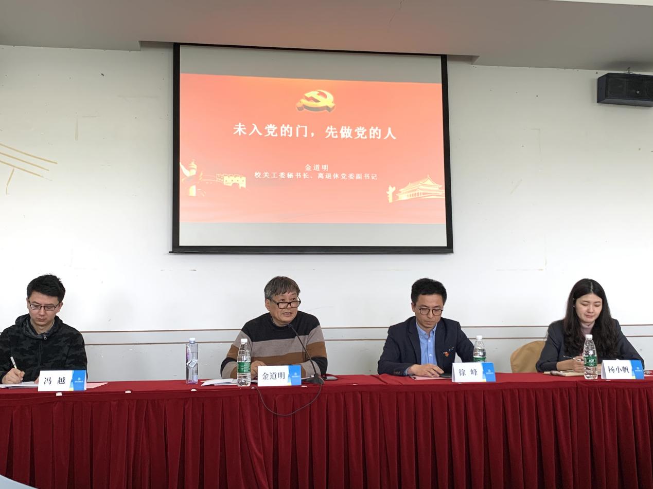4月25日下午,學(xué)院黨校第14期入黨積極分子培訓(xùn)班開班儀式在信息樓530會議室舉行。活動邀請學(xué)校關(guān)工委秘書長、離退休黨委副書記金道明作了專題黨課。學(xué)院黨委副書記徐峰、黨建主管馮越、本科生黨支部書記楊小帆以及培訓(xùn)班全體學(xué)員出席活動。