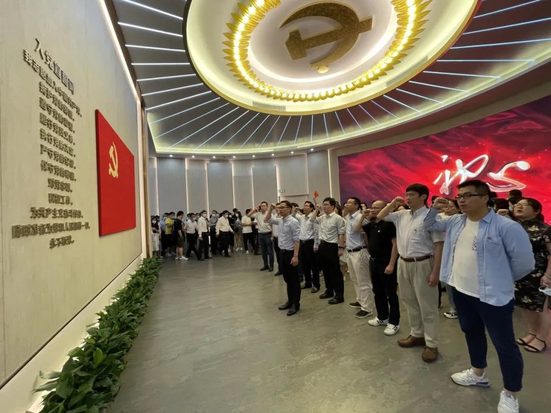 在中共一大紀念館,全體黨員們一起參觀了“偉大的開端——中國共產黨創建歷史陳列”。在場館紅色講師的精彩講解下,透過一件件珍貴文物、一張張圖片、一段段影片,沿著早期共產黨人的足跡,黨員們仿佛回到那段崢嶸歲月,感受著革命先輩在艱難困苦中砥礪前行,在國家風雨飄搖中堅定信念,前仆后繼、救亡圖存,黨員們內心燃起同樣的火焰。在宣誓墻前,面對鮮紅的黨旗,由范登峰領誓,大家一起重溫入黨宣誓,聲聲鏗鏘有力,字字鐫刻心中。