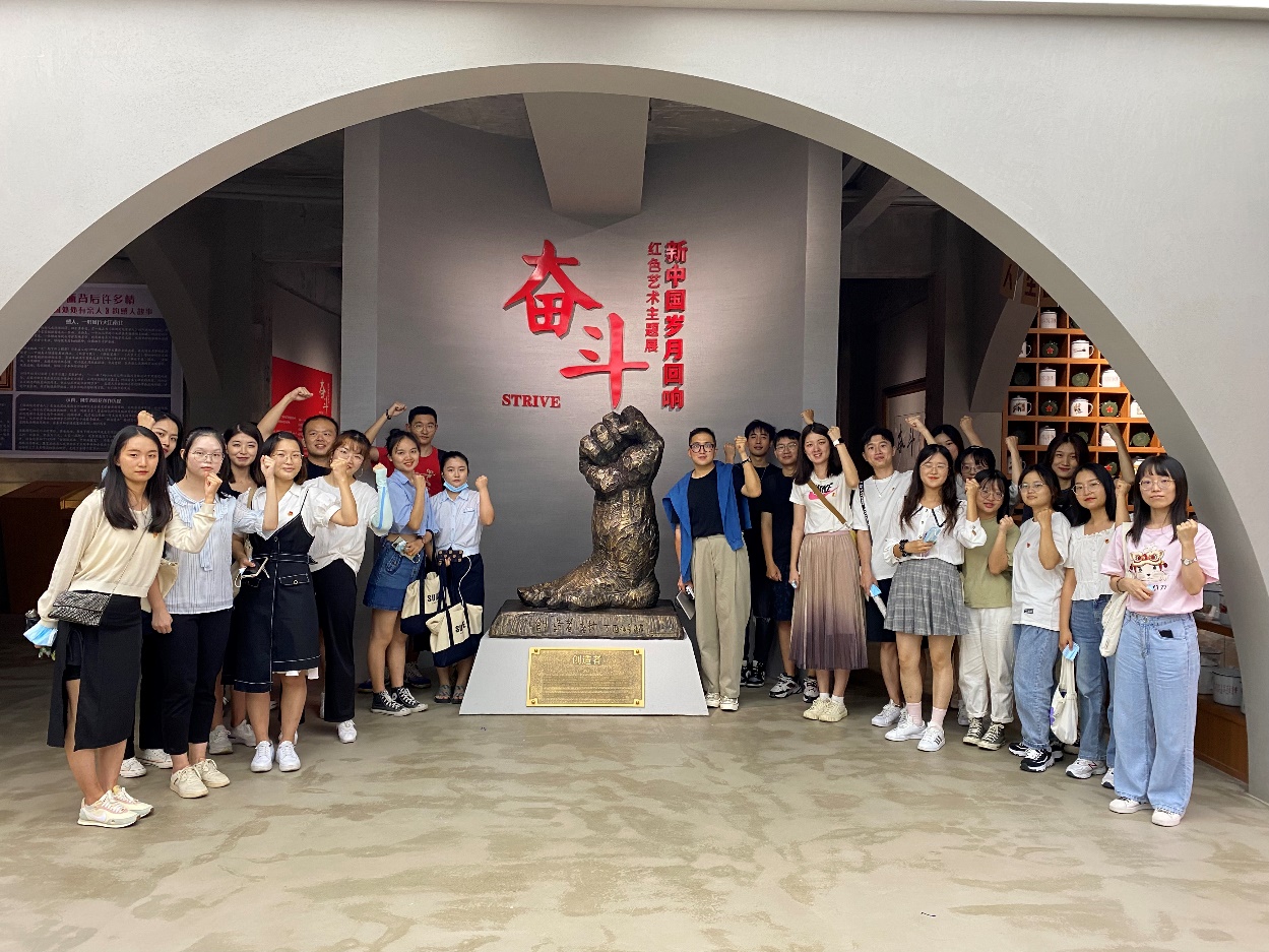 在執行館長金明的精彩講解下,同學們開始了 “奮斗——新中國歲月回響”紅色藝術主題展參觀之旅。展廳門口的 “創造者”雕像所展現的奮斗姿態,體現了中國共產黨領導人民以不懈奮斗的精神創造了當今的幸福生活。隨后,同學們繼續參觀學習了《覺醒》、《建黨初期》、《長征路上》、《巧渡金沙江》、《上海第三次工農運動》、《毛主席與紅小鬼》、《只要主義真:刑場上的婚禮》、《毛主席與陜北老農》《崛起》等優秀紅色作品,一件件藝術作品展示著百年滄桑巨變,體現著中國共產黨是人民的政黨,是與時俱進、永葆青春的政黨,是始終保持初心使命,不斷為人民謀幸福、為民族謀復興的政黨。