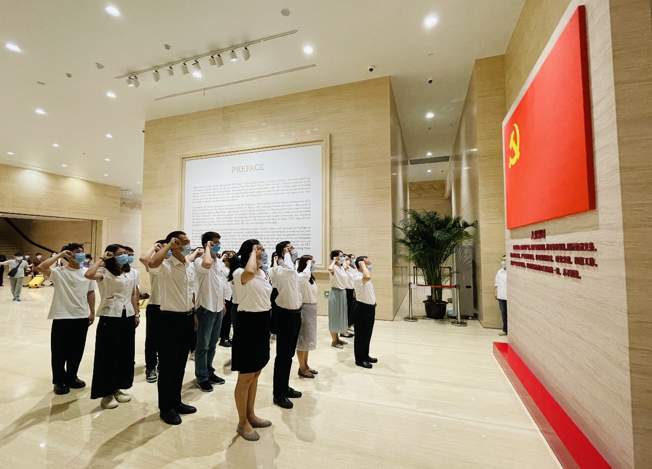 全體師生黨員參觀了中共一大會址和中共一大會址紀念館。在紀念館,師生黨員認真參觀了序廳、“前仆后繼、救亡圖存”“民眾覺醒、主義抉擇”“早期組織、星火初燃”“開天辟地、日出東方”“砥礪前行、光輝歷程”和尾廳等7個主題板塊,詳細了解中國共產黨的誕生歷程與百年奮斗光輝成就。