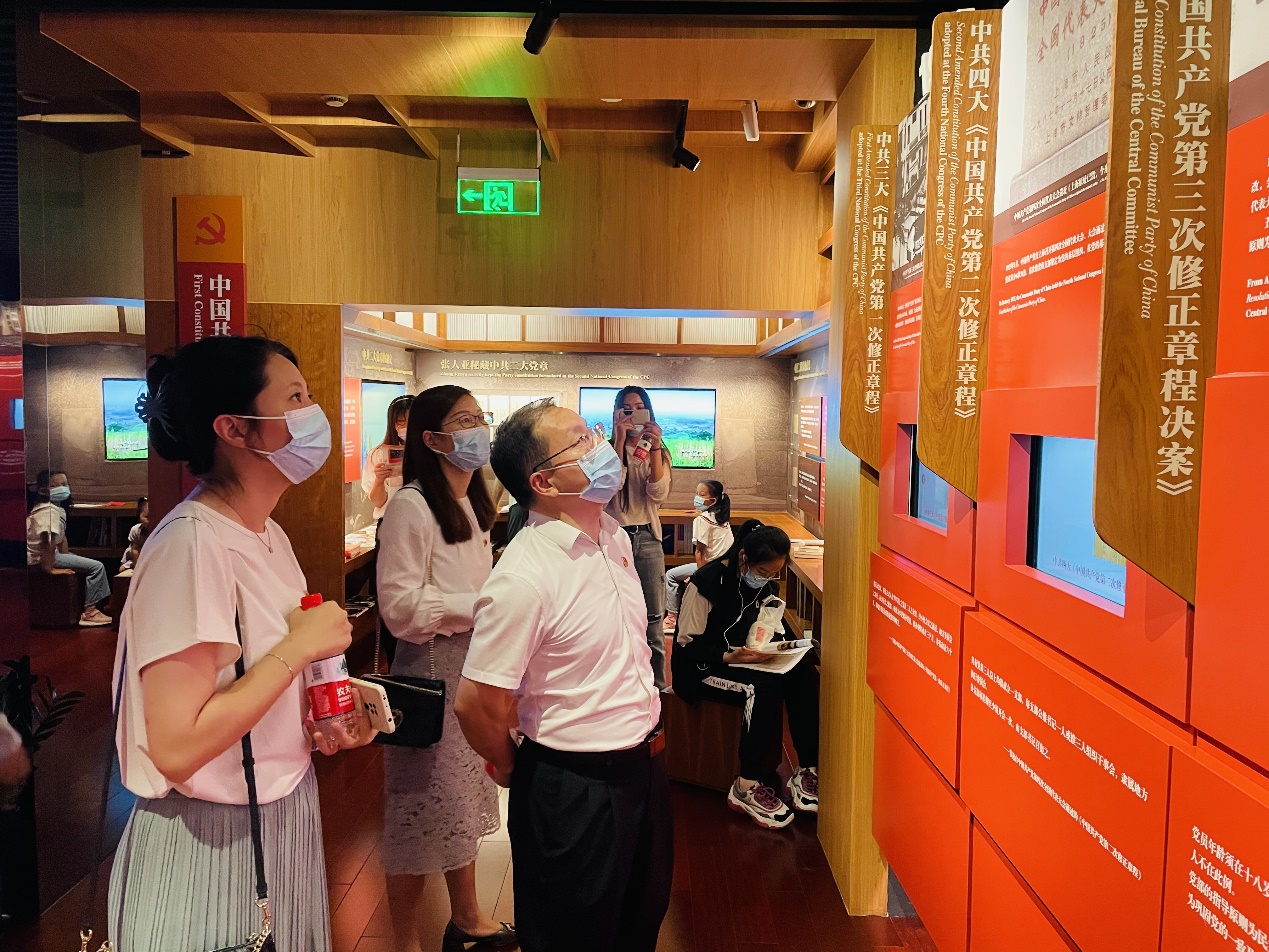 結束中共一大會址紀念館的參觀學習后,師生黨員前往中共二大會址紀念館,繼續學習了解中共二大召開的背景、主要成果與歷史貢獻,并參觀了黨章歷程展廳,了解首部黨章的基本知識以及黨章的歷史發展。