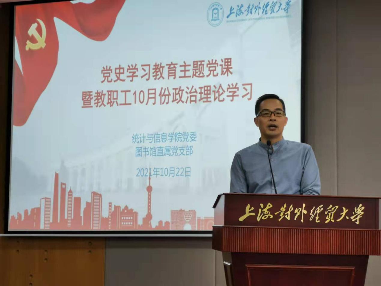 為進一步深入學習領會習近平總書記“七一”重要講話精神,從黨的百年偉大奮斗歷程中汲取智慧和力量,10月22日下午,學院邀請中共上海市委黨校中共黨史研究部王瑤副教授作“上海紅色文化與偉大建黨精神——深入學習習近平總書記“七一”重要講話精神”專題輔導報告。學院領導班子成員,全體教職工、全體學生黨員以及學校圖書館直屬黨支部黨員參加了學習會。會議由學院黨委書記范登峰主持。