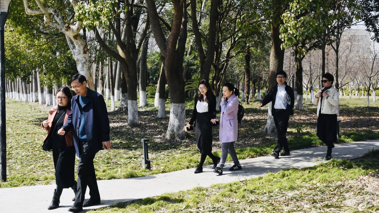 活動精心設計了漫步線路,從學院博識樓出發,途經櫻花廣場、思源湖、新圖書館、文貿路、龍船碼頭,至學校操場?;顒又校刂O定線路,教師們漫步在美麗校園,大家三五成群,步履矯健,沐浴春光,歡聲笑語與初春美景相互映襯,為校園增添了一道美麗的風景線。