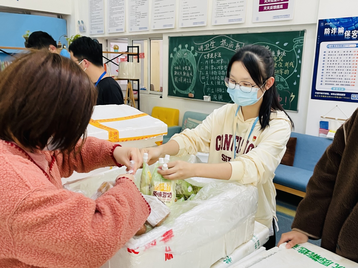 輔導員:“我會一直與大家在一起”。學生社區(qū)封控期間,學院本科生黨支部書記、輔導員楊小帆第一時間組建了一支由學生支部書記、學生黨員、團員骨干組成的50人社區(qū)志愿者專班隊伍,根據(jù)學校統(tǒng)一要求,組織核酸檢測、配送物資、送餐送水,統(tǒng)計報送數(shù)據(jù),關心學生在線學習,穩(wěn)定學生情緒,進行心理疏導。她每天奔波在社區(qū)各個樓宇,睡眠不足5個小時,卻始終帶著微笑鼓勵同學們:“同學們不用擔心,我會一直與大家在一起。”學生黨團員:“我們共產黨員責無旁貸”“我們共青團員義不容辭”。當社區(qū)打響防疫戰(zhàn)斗,社區(qū)里的學生黨員和團員火速向輔導員報名集結,加入志愿者專班隊伍,有序參與各項服務工作。研究生第六黨支部書記申玉宇同學帶領學生黨員、退伍學生、團員組成的志愿者隊伍,樓宇封閉前,凌晨引導同學們排隊進行核酸檢測;樓宇封閉后,他們來回奔波為同學拿取訂購的物資和藥品;天色微亮他們?yōu)橥瑢W們送上熱氣騰騰的早飯;每天不辭辛苦多次往返在數(shù)個樓棟7層樓梯上,敲響130多個寢室,叮囑同學們按時吃飯。學生黨員王文彥,每天堅持一個人負責樓內30多位同學配送三餐。還有很多學生積極報名的同學,雖然沒能穿上志愿者馬甲,但是他們仍然主動服務、積極奉獻,為抗擊疫情貢獻紅色青春力量。他們,成為學生社區(qū)最靚麗的風景線,為抗擊疫情貢獻紅色青春力量。