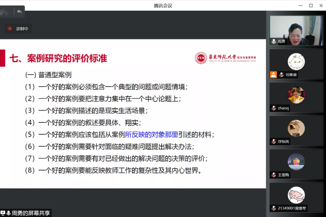 周勇教授從一個二手車平臺的統計分析案例入手,闡釋了案例取材的重要性、案例寫作脈絡和案例研究的評價標準。他還結合實例,從文體和表述方式、寫作思路和思維方式、內容和受眾方面等方面深入淺出地引導同學們更加深入地了解案例的寫作規范和技巧,激發了同學們濃厚的興趣。