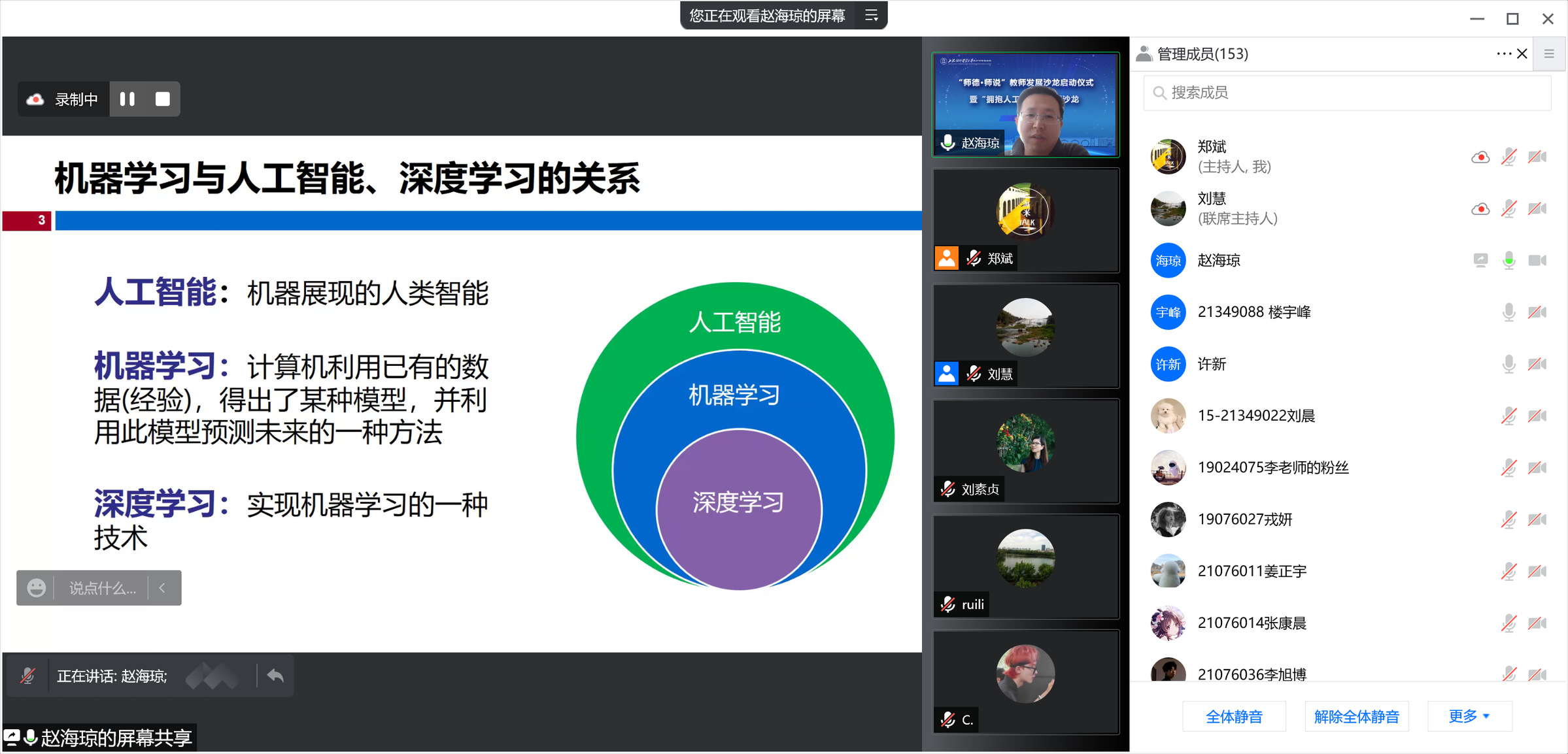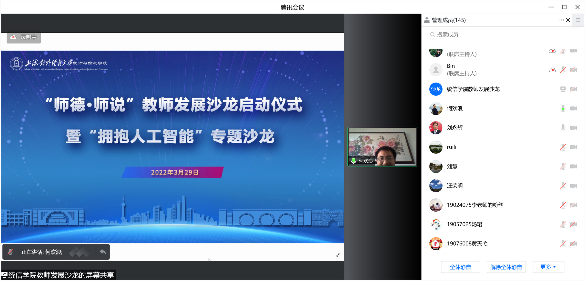 啟動儀式后,舉行了首期專題沙龍。圍繞人工智能本科新專業建設以及人工智能與統計交叉學科建設,沙龍以“擁抱人工智能”為主題,師生分享和探討了人工智能研究領域的最新成果。沙龍由統計與信息學院副院長劉慧主持。