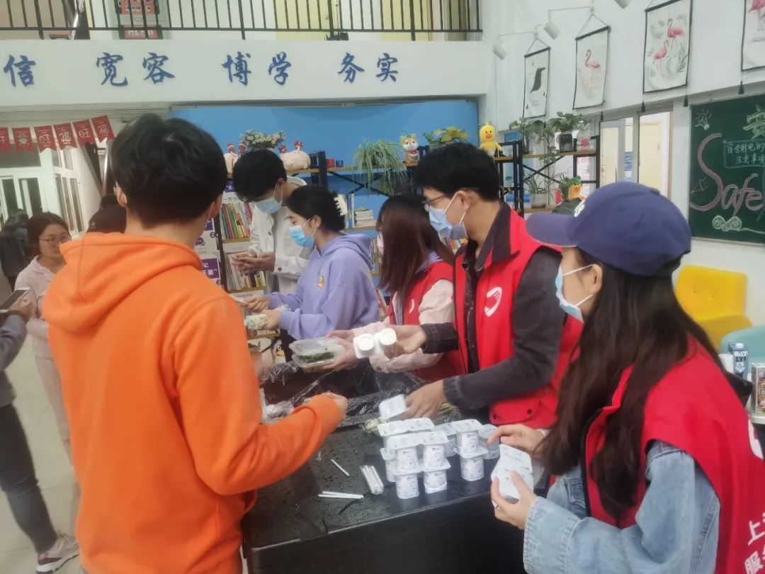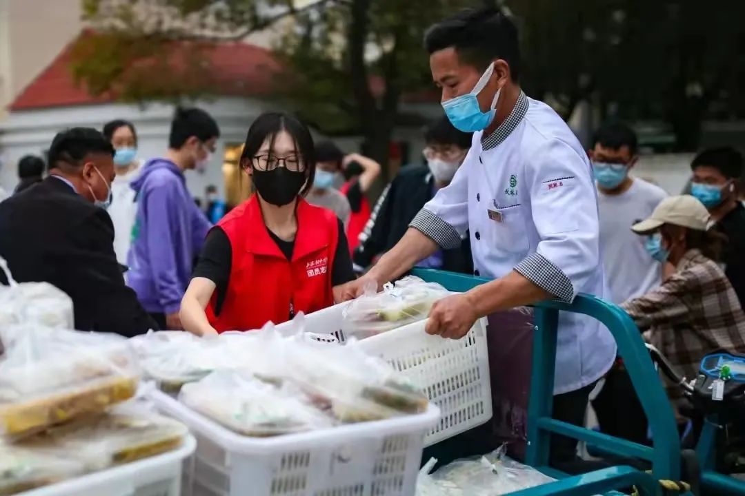 很榮幸此次能擔任一名抗疫志愿者,彌補兩年前的那抹遺憾。作為樓宇志愿者,我們引導大家進行核酸檢測,分發一日三餐。作為送餐志愿者,我們推著餐車在各個樓棟之間穿梭,確保同學們能準點吃飯。在這里,所有人都是溫暖的存在。老師們開緊急會議,更新信息,準備物資,陪同出餐;無數的志愿者們并肩作戰,保障大家的日常生活;同學們積極配合,井然有序,悄悄為志愿者們準備自己的一份心意。