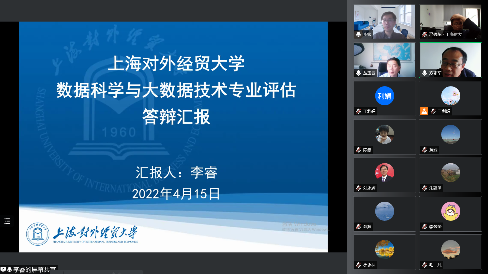 4月15日下午,統計與信息學院數據科學與大數據技術專業學士學位授權審核答辯評審會在線舉行。本次評審會邀請上海海關學院校長叢玉豪教授擔任評審專家組組長,華東理工大學黃婕教授、復旦大學高衛國教授、上海財經大學馮興東教授、上海工程技術大學方志軍教授等擔任專家組成員。學校副校長徐永林出席會議并講話,教務處副處長(主持工作)朱建明、副處長李醫群,統計與信息學院院長劉永輝、副院長王利娟,統計與信息學院黨委副書記、數據科學系系主任李睿,以及數據科學系部分骨干教師參加評審會。會議由專家組組長叢玉豪教授主持。