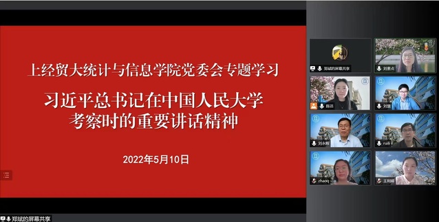 5月10日上午,統(tǒng)計(jì)與信息學(xué)院召開黨委會(huì),專題學(xué)習(xí)習(xí)近平總書記在中國人民大學(xué)考察時(shí)的重要講話精神。會(huì)議由學(xué)院黨委副書記(主持工作)劉素貞主持。