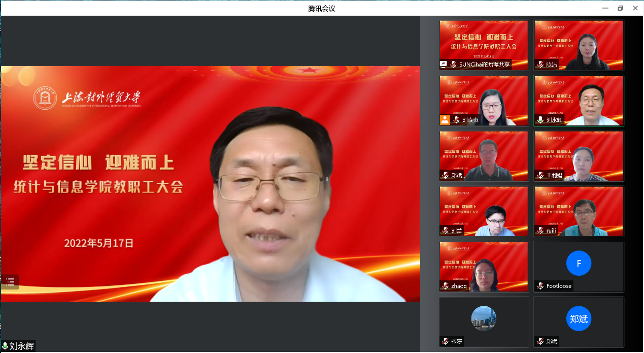 5月17日下午,統(tǒng)計(jì)與信息學(xué)院在線召開全體教職工大會(huì),就近期疫情防控工作和學(xué)院教學(xué)、科研、畢業(yè)生就業(yè)及“訪萬(wàn)企,讀中國(guó)”社會(huì)調(diào)查項(xiàng)目等重點(diǎn)工作進(jìn)行了部署,學(xué)院領(lǐng)導(dǎo)班子、全體教職工參加了會(huì)議。會(huì)議由院長(zhǎng)劉永輝主持。