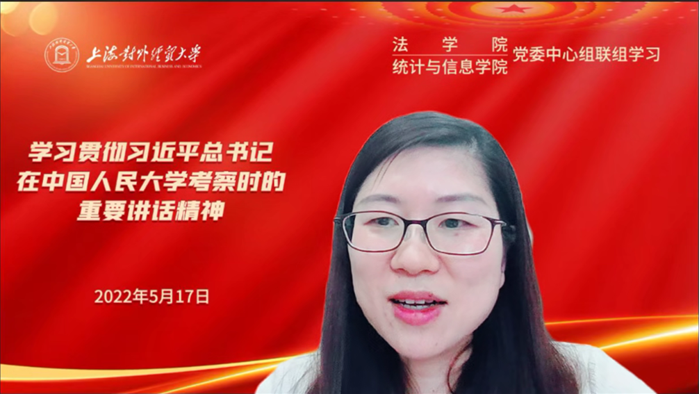 輔導(dǎo)報告后,法學(xué)院、統(tǒng)計與信息學(xué)院黨委中心組進(jìn)行聯(lián)組交流研討,雙方黨員干部結(jié)合工作實(shí)際,就學(xué)習(xí)體會進(jìn)行了交流和討論。與會雙方充分肯定了此次聯(lián)組學(xué)習(xí)的成效,表示將積極貫徹習(xí)近平總書記在中國人民大學(xué)考察時的重要講話精神,充分結(jié)合學(xué)院實(shí)際、發(fā)揮各自優(yōu)勢,在黨建工作、學(xué)科發(fā)展、人才培養(yǎng)、課程思政和教師隊伍建設(shè)等方面加強(qiáng)交流合作,互相借鑒有效經(jīng)驗,牢牢把握立德樹人根本任務(wù),扎根中國大地辦教育,扎實(shí)推動習(xí)近平總書記重要講話精神的落地見效,統(tǒng)籌推進(jìn)防疫工作和事業(yè)發(fā)展,以優(yōu)異成績迎接黨的二十大勝利召開。