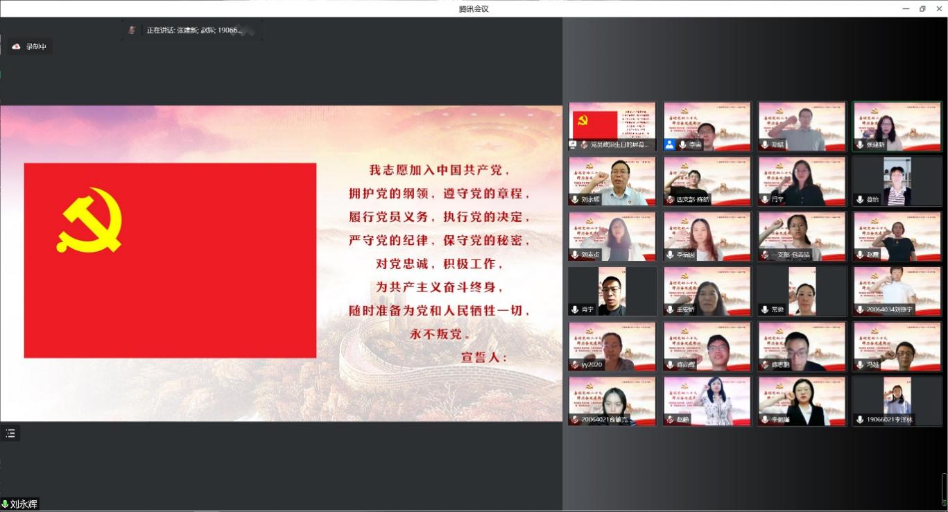 活動(dòng)最后,統(tǒng)計(jì)與信息學(xué)院黨委副書記、院長(zhǎng)劉永輝領(lǐng)誓,全體與會(huì)黨員在云端重溫入黨誓詞。師生們紛紛表示,本次主題活動(dòng)形式鮮活、內(nèi)容深刻、收獲滿滿,將進(jìn)一步深入學(xué)習(xí)貫徹上海市第十二次黨代會(huì)精神,認(rèn)真學(xué)黨史、知黨史、用黨史,弘揚(yáng)偉大建黨精神,牢記囑托、砥礪奮進(jìn),在學(xué)習(xí)工作生活中爭(zhēng)當(dāng)排頭兵和先行者,為學(xué)院和學(xué)校事業(yè)發(fā)展貢獻(xiàn)智慧和力量,以優(yōu)異的成績(jī)迎接黨的二十大勝利召開(kāi)。