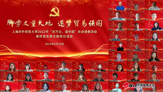 6月30日,臨時黨支部以“腳步丈量大地 逐夢貿易強國”為主題開展黨日活動,校內外專家開設專題黨課,吸引項目組師生,校內外學者等近600人同上一堂黨課。校長汪榮明以《腳步丈量大地 逐夢貿易強國》為題開設導課,他回顧了貿易強國發展歷程,帶領師生感悟新時代的召喚和上經貿大人的責任與擔當。中國對外經濟貿易統計學會名譽會長王亞平和海關總署全球貿易監測分析中心(上海)、上海海關統計分析處副處長李計融分別以《認清形勢,把握大勢,堅持發展與開放不動搖》和《立潮頭 觀未來——上海外貿發展的基本邏輯及未來走向》為題授黨課。主題黨日活動和系列黨課的講授進一步激勵參與調查項目的師生牢記囑托、砥礪奮進,以黨建領航助推“訪萬企,讀中國”社會調查項目取得高質量成果。