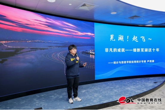 活動播放了“數(shù)說家鄉(xiāng)這十年”尋訪活動視頻。2023年寒假,統(tǒng)計與信息學(xué)院面向返鄉(xiāng)大學(xué)生開展“數(shù)說家鄉(xiāng)這十年”實踐活動,鼓勵學(xué)生聚焦“數(shù)說城市發(fā)展”“數(shù)說鄉(xiāng)村振興”“數(shù)說幸福生活”三個主題,以數(shù)據(jù)可視化方式,展現(xiàn)家鄉(xiāng)新時代十年取得的飛速發(fā)展和矚目成就。同學(xué)們紛紛為家鄉(xiāng)代言,在“數(shù)說”家鄉(xiāng)發(fā)展歷程中迸發(fā)出強大的自豪感,進一步砥礪了使命責(zé)任,活動受到媒體的廣泛報道。