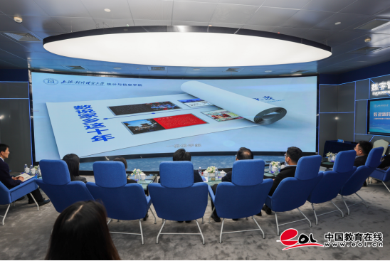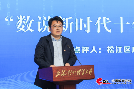 中國教育在線上海站 為深入學(xué)習(xí)宣傳貫徹黨的二十大精神,幫助師生更加全面地把握新時代十年偉大變革,更深入地領(lǐng)悟中國式現(xiàn)代化的豐富內(nèi)涵,凝聚起團結(jié)奮斗的磅礴力量,3月23日下午,上海對外經(jīng)貿(mào)大學(xué)統(tǒng)計與信息學(xué)院在學(xué)校新建成的數(shù)字經(jīng)貿(mào)實驗室開展“數(shù)說二十大”系列主題活動之“數(shù)說新時代十年發(fā)展成就”。上海對外經(jīng)貿(mào)大學(xué)校長汪榮明,松江區(qū)廣富林街道辦事處副主任陳皇,校黨委常委、黨委組織部部長陳加林,校黨委常委、黨委宣傳部部長、國際經(jīng)貿(mào)學(xué)院黨委書記郭茜,校黨委學(xué)工部部長、學(xué)生處處長繆韻笛,校團委書記司徒力云,以及各學(xué)院領(lǐng)導(dǎo)出席了活動。活動開通了在線直播,全校近千名師生在線觀看。活動由上海對外經(jīng)貿(mào)大學(xué)統(tǒng)計與信息學(xué)院黨委書記劉素貞主持。