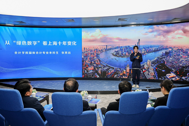 把“數(shù)說新時代十年發(fā)展成就”思政課堂搬進(jìn)數(shù)字經(jīng)貿(mào)實(shí)驗(yàn)室,是上經(jīng)貿(mào)大統(tǒng)計(jì)與信息學(xué)院的一次創(chuàng)新嘗試。師生在這里真正體驗(yàn)到了一堂“沉浸式”的黨課和思政課,數(shù)字經(jīng)貿(mào)實(shí)驗(yàn)室里展示了學(xué)校進(jìn)入新時代以來在數(shù)字經(jīng)濟(jì)、數(shù)字金融、數(shù)字貿(mào)易等領(lǐng)域的優(yōu)秀成果和積極貢獻(xiàn),與師生們的授課內(nèi)容相印證,更有效地激發(fā)了師生的自豪感和使命感,“小課堂”實(shí)現(xiàn)了“大教育”。