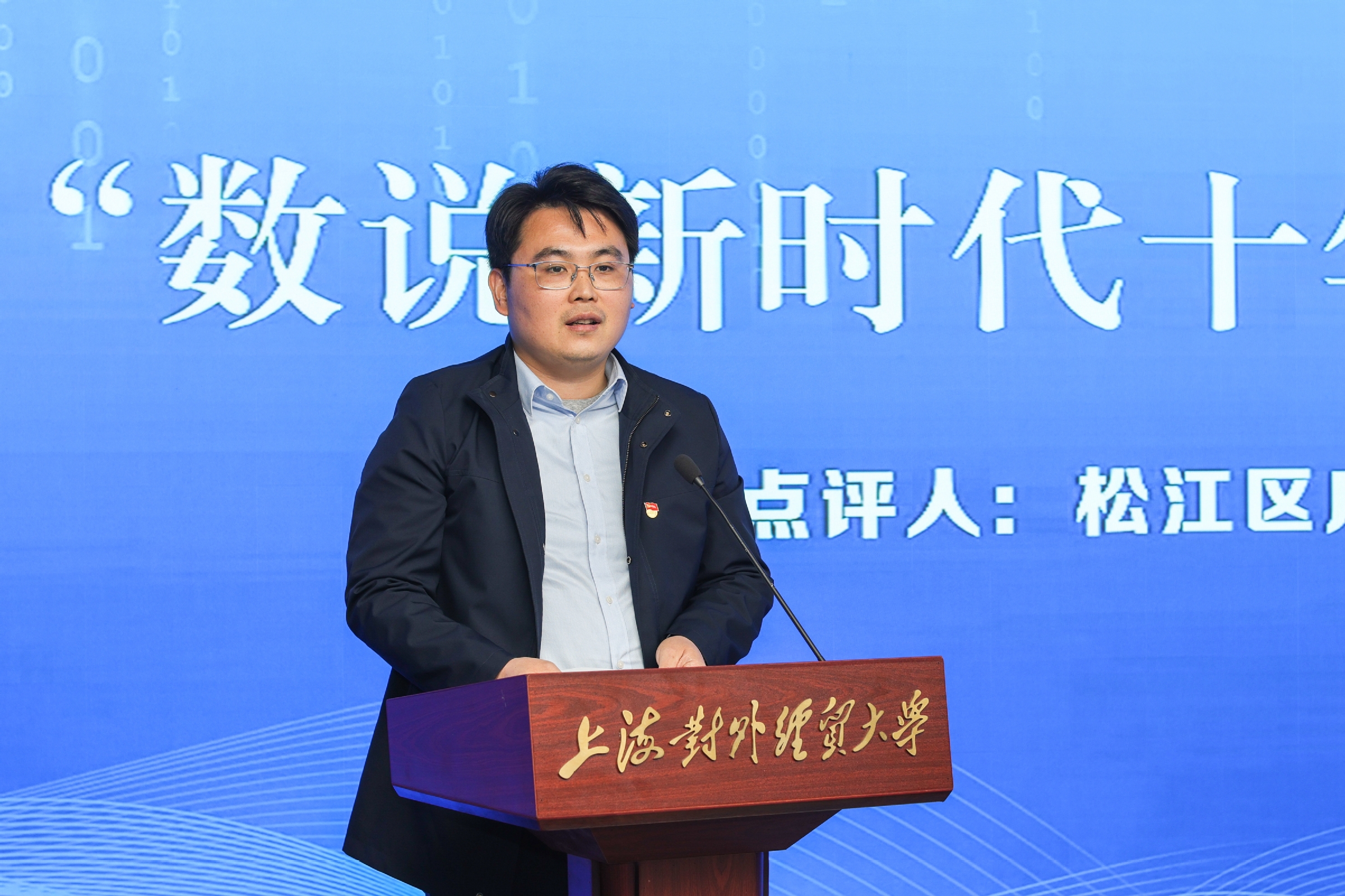 為深入學(xué)習(xí)宣傳貫徹黨的二十大精神,幫助師生更加全面地把握新時(shí)代十年偉大變革,更深入地領(lǐng)悟中國(guó)式現(xiàn)代化的豐富內(nèi)涵,凝聚起團(tuán)結(jié)奮斗的磅礴力量,3月23日下午,上海對(duì)外經(jīng)貿(mào)大學(xué)統(tǒng)計(jì)與信息學(xué)院在學(xué)校新建成的數(shù)字經(jīng)貿(mào)實(shí)驗(yàn)室開(kāi)展“數(shù)說(shuō)二十大”系列主題活動(dòng)之“數(shù)說(shuō)新時(shí)代十年發(fā)展成就”。上海對(duì)外經(jīng)貿(mào)大學(xué)校長(zhǎng)汪榮明,松江區(qū)廣富林街道辦事處副主任陳皇,校黨委常委、黨委組織部部長(zhǎng)陳加林,校黨委常委、黨委宣傳部部長(zhǎng)、國(guó)際經(jīng)貿(mào)學(xué)院黨委書(shū)記郭茜,校黨委學(xué)工部部長(zhǎng)、學(xué)生處處長(zhǎng)繆韻笛,校團(tuán)委書(shū)記司徒力云,以及各學(xué)院領(lǐng)導(dǎo)出席了活動(dòng)?;顒?dòng)開(kāi)通了在線直播,全校近千名師生在線觀看?;顒?dòng)由上經(jīng)貿(mào)大統(tǒng)計(jì)與信息學(xué)院黨委書(shū)記劉素貞主持。