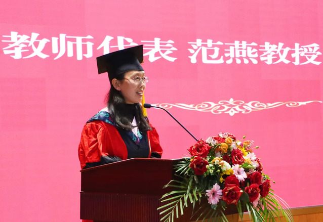數理統計系范燕教授作為研究生導師代表勉勵畢業生要堅定信念、勇攀高峰;享受過程、注重細節;樂觀向上,感恩生活。同時她為畢業生們送上了一句歌詞作為寄語:“The sky knows when it’s time to snow. Don’t need to teach a seed to grow.”,并祝愿所有畢業生們都能擁有幸福、快樂、充實、精彩的人生。