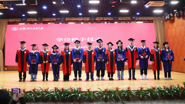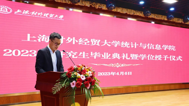 4月6日下午,上海對外經貿大學統計與信息學院2023屆研究生畢業典禮暨學位授予儀式在松江校區圖文信息大樓507報告廳舉行。統計與信息學院黨委書記劉素貞,院長張日權,院黨委副書記范鳴,副院長王利娟、趙倩、李睿出席畢業典禮。學院各系主任、導師代表、輔導員,2023屆全體研究生參加了畢業典禮。畢業典禮由范鳴主持。