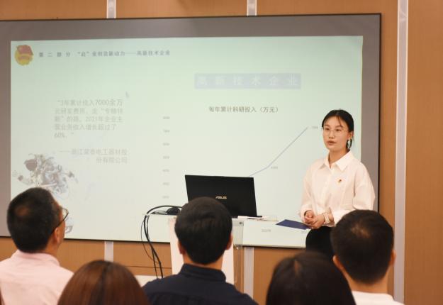 經濟統計學2101班的團支書陳鑫怡以《數說62年上經貿大奮進之路》為題,以數字為引,回顧了上經貿大“創業維艱,兩落三起”的建校故事,“助力入世,風發泉涌”的復關始末,“求之其本,經旬其得”的新時代新征程。經濟統計學2101班的曾藝以《“訪萬企,讀中國”,從“專精特新”看中國企業高質量發展》為題,通過直觀的統計圖表,將抽象的數字形象化,講述了中國“專精特新”企業銳意進取,創新求索的發展故事。