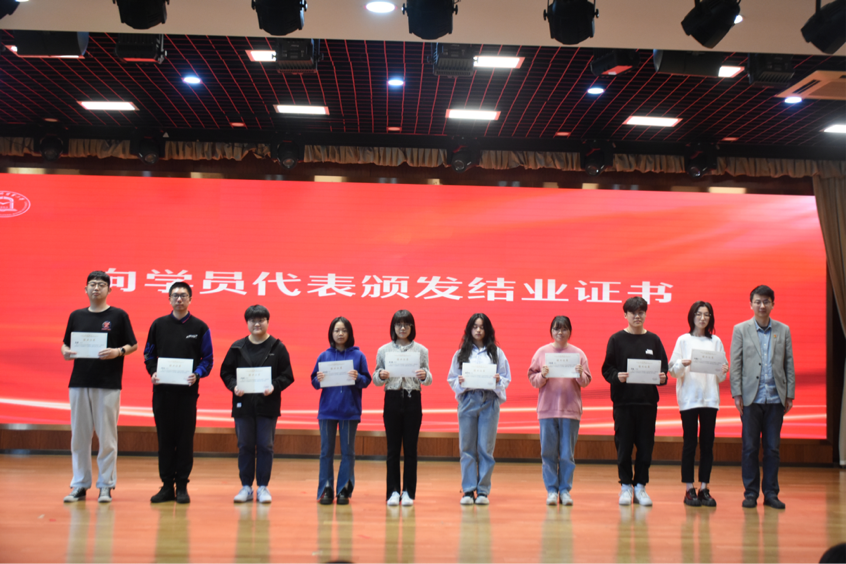 本期入黨積極分子培訓班共有187名學員參加培訓,其中134名學員順利結業,11名學員在培訓中綜合表現優異,被評為“優秀學員”。劉素貞為優秀學員頒發榮譽證書,馮越為學員代表頒發結業證書。