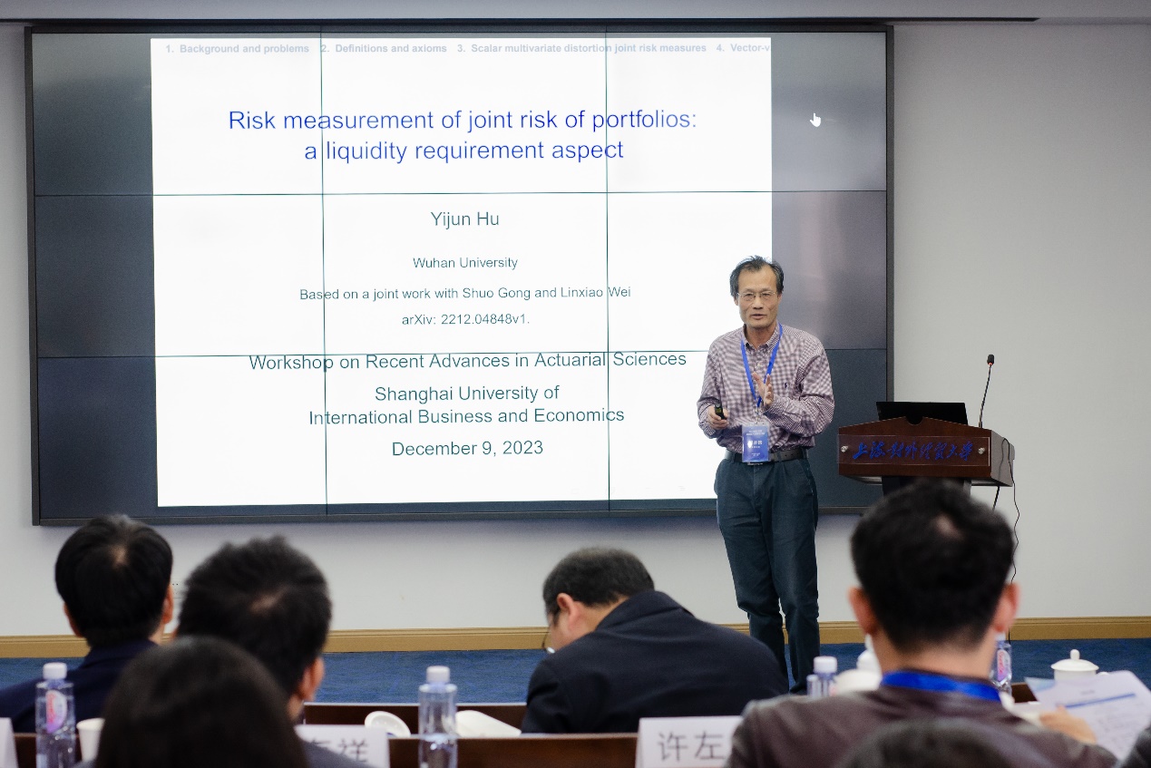 為促進和加強保險精算學領域科研人員之間的學術交流與合作,加快培養保險精算和交叉學科人才,2023年12月9日,由統計應用與理論研究創新引智基地(以下簡稱“111引智基地”)主辦,上海對外經貿大學統計與信息學院、華東師范大學統計學院和統計與數據科學前沿理論及應用教育部重點實驗室聯合協辦的“2023保險精算最新研究進展研討會”在上海對外經貿大學古北校區順利舉行。上海對外經貿大學校長、111引智基地負責人汪榮明教授出席會議并致辭。來自西交利物浦大學、中國人民大學、中國科學技術大學、武漢大學、蘇州大學、天津大學、南京師范大學、香港理工大學、廣東外語外貿大學、南京財經大學、福建師范大學、華東師范大學、上海對外經貿大學等十余所高校的專家學者及師生圍繞保險精算學的研究進展進行了深入研討和交流。會議開幕式由上海對外經貿大學統計與信息學院副院長趙倩主持。